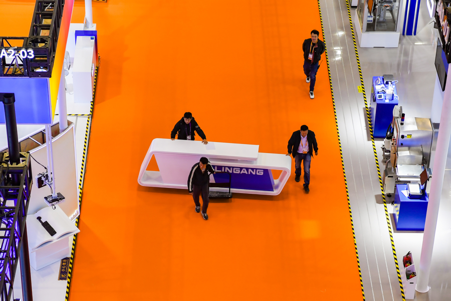 今天上午记者在现场看到,布展工作已进入最后冲刺阶段,场馆内,目之所及皆是热火朝天的忙碌景象,工作人员正抓紧对展台以及展品进行最后的调试。